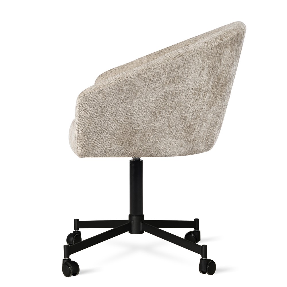 Krzesło LOTOS WHEELS wyróżnia się nowoczesną elegancją i wysoką funkcjonalnością, łącząc stylowy wygląd z wygodą codziennego użytkowania. Minimalistyczna forma wprowadza lekkość do wnętrza, idealnie pasując do jadalni, salonu czy biura. Profilowane oparcie stabilnie podtrzymuje plecy, a siedzisko wypełnione pianką i sprężynami kieszeniowymi (pocket springs) zapewnia komfort nawet podczas długiego siedzenia. Stabilna, obrotowa metalowa podstawa na kółkach zwiększa swobodę ruchu i podkreśla nowoczesny charakter mebla.