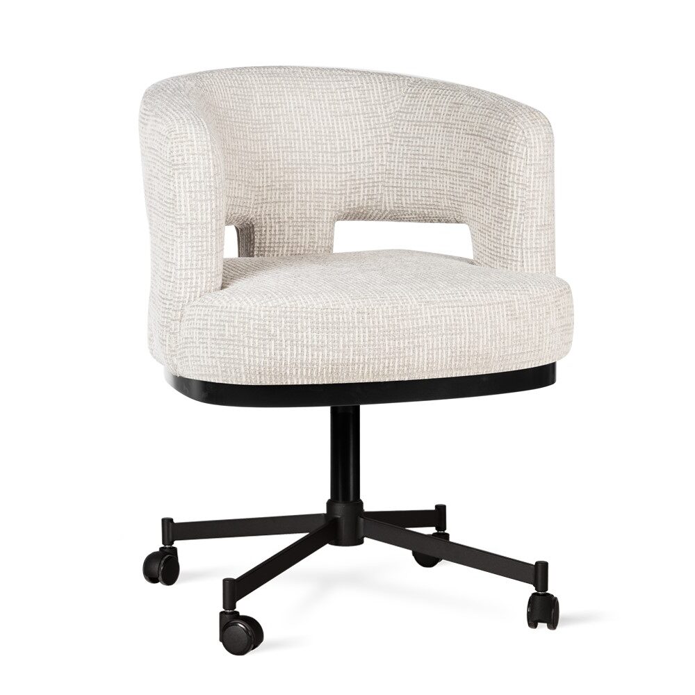 The backrest combined with armrests ensures comfort and functionality, and the comfortable