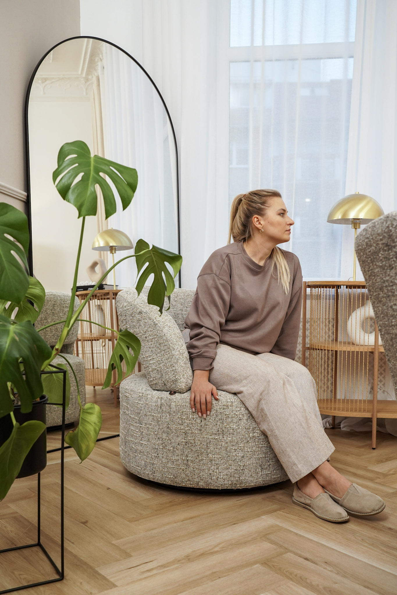 W przestrzeni wypełnionej światłem fotel BLOOM staje się miejscem, które zaprasza do relaksu i wyciszenia. Jego smukła, otulająca sylwetka harmonijnie obejmuje ciało, tworząc przytulną przestrzeń do odpoczynku. Siedzisko wypełnione pianką HR, sprężynami pocket i pasami tapicerskimi zapewnia miękkość i komfort, a obrotowa, w pełni tapicerowana podstawa podkreśla elegancki charakter mebla.