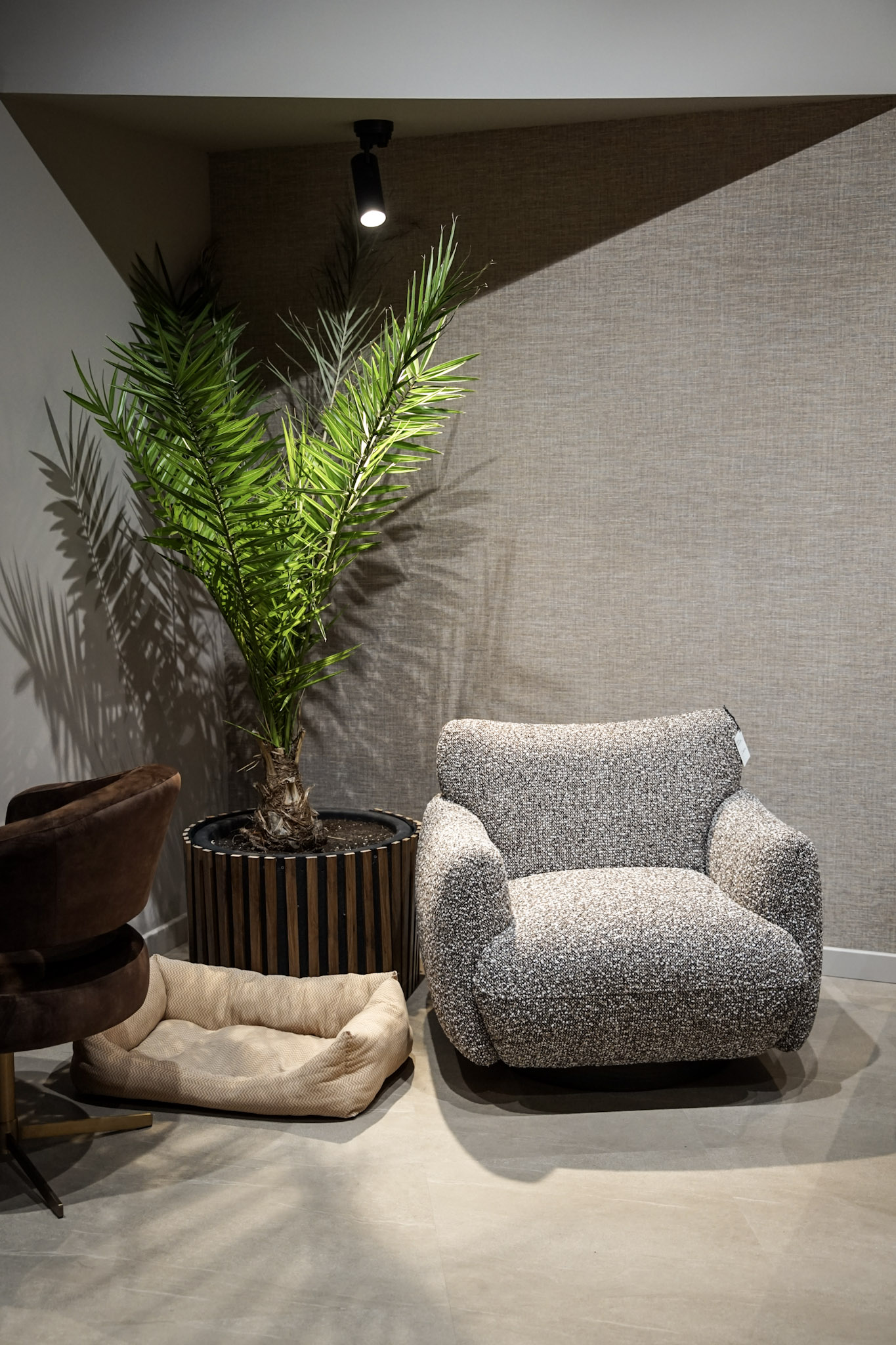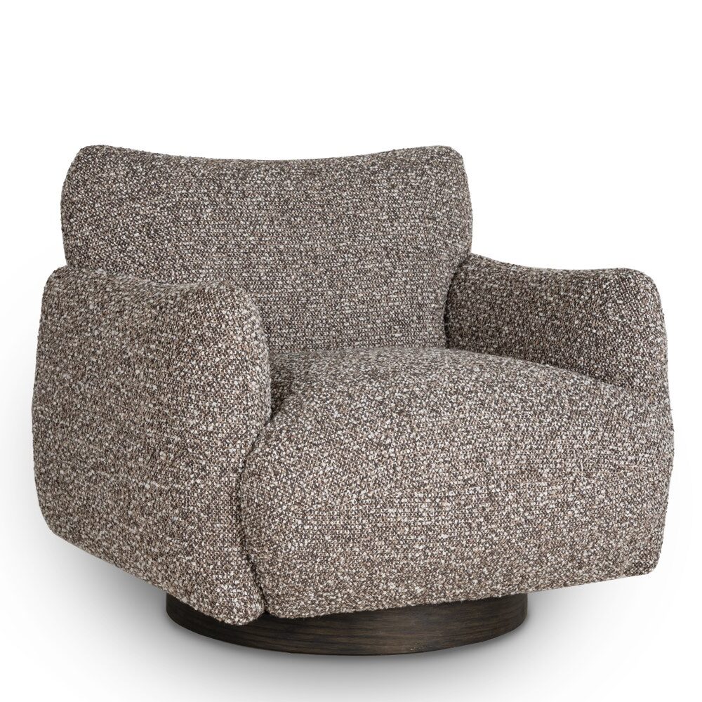 Fotel SHELBY to nowoczesny mebel łączący komfort z eleganckim designem. Miękkie, zaoblone linie nadają mu przytulny charakter, a szerokie siedzisko wypełnione pianką oraz wyprofilowane oparcie gwarantują wygodę nawet podczas długiego użytkowania. Obicie z tkaniny boucle w odcieniach szaro-brązowych wprowadza do wnętrza ciepło i subtelną elegancję, podkreślając współczesny charakter fotela.
