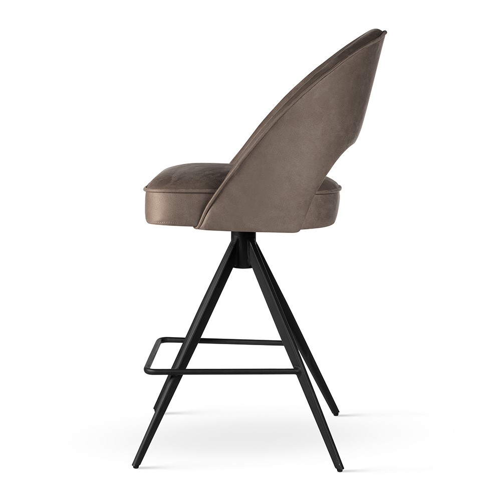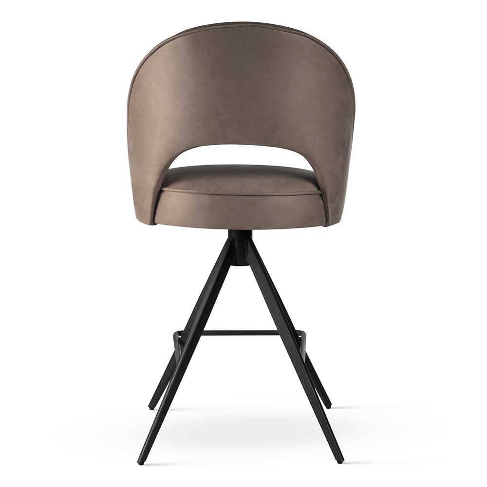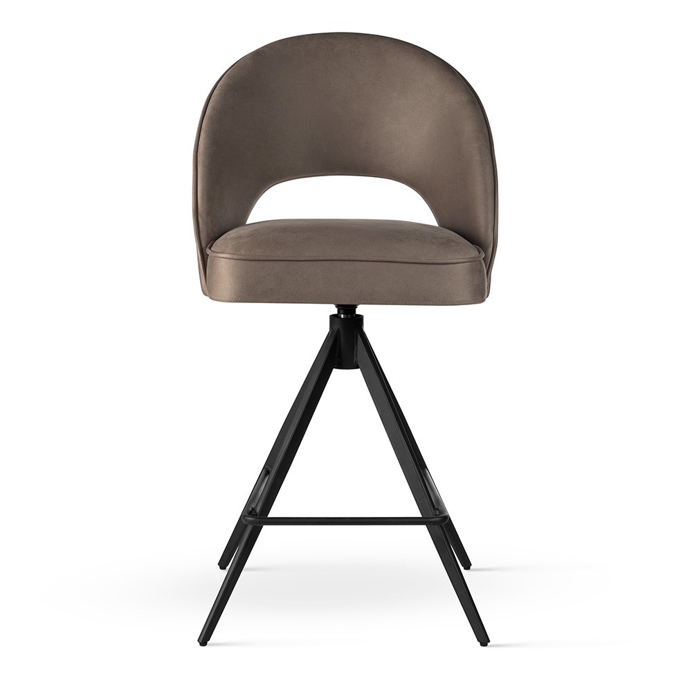 Metalowa, obrotowa noga w kształcie piramidki zapewnia stabilność i swobodę ruchu, podkreślając nowoczesny charakter mebla. Subtelne wycięcie w oparciu dodaje lekko dekoracyjnego charakteru, a możliwość wyboru tapicerki i koloru podstawy pozwala dopasować hoker do każdej aranżacji. Model sprawdzi się w kuchni, jadalni lub przy wyspie barowej, łącząc elegancję z praktycznym zastosowaniem.