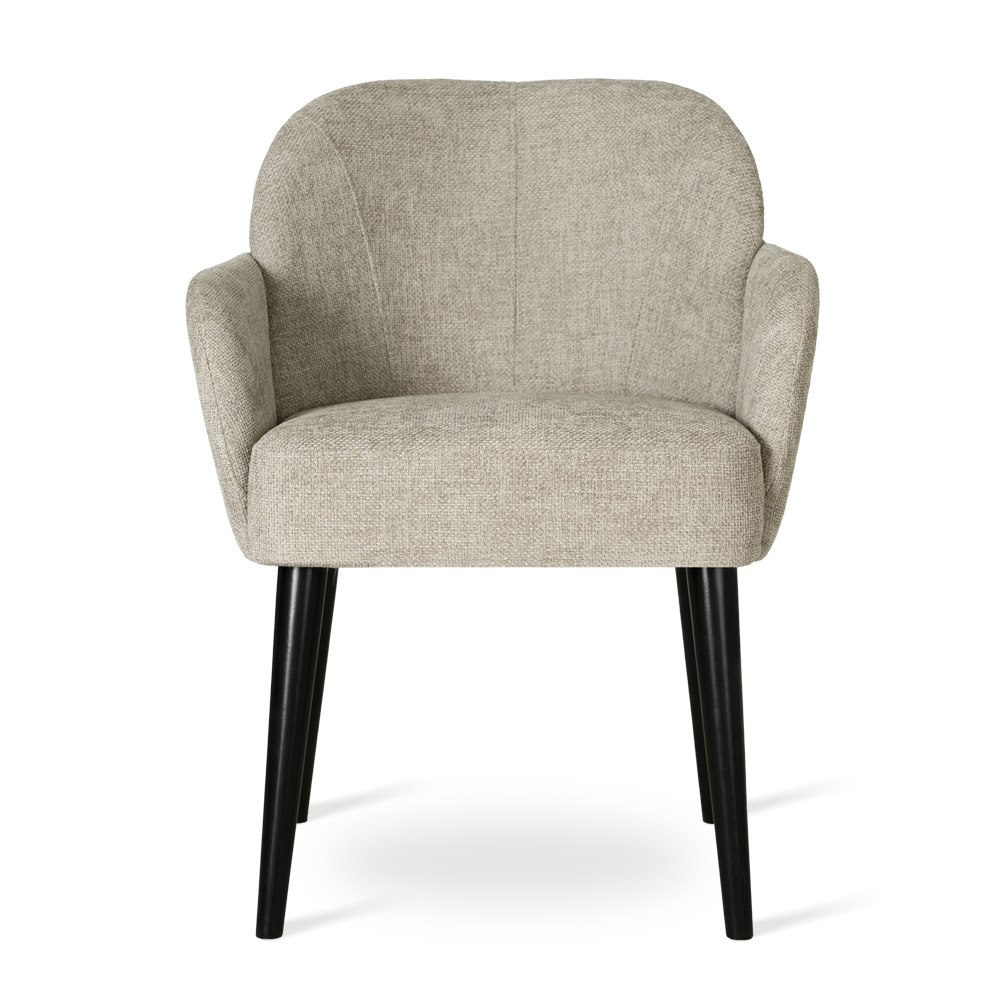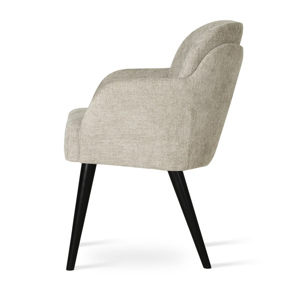 Siedzisko z pianki, pasów tapicerskich i sprężyn kieszeniowych zapewnia sprężystość oraz wysoki komfort użytkowania, a ergonomicznie wyprofilowane oparcie wspiera plecy, tworząc harmonijne połączenie wygody i eleganckiego designu, z możliwością personalizacji tkaniny i koloru nóg.